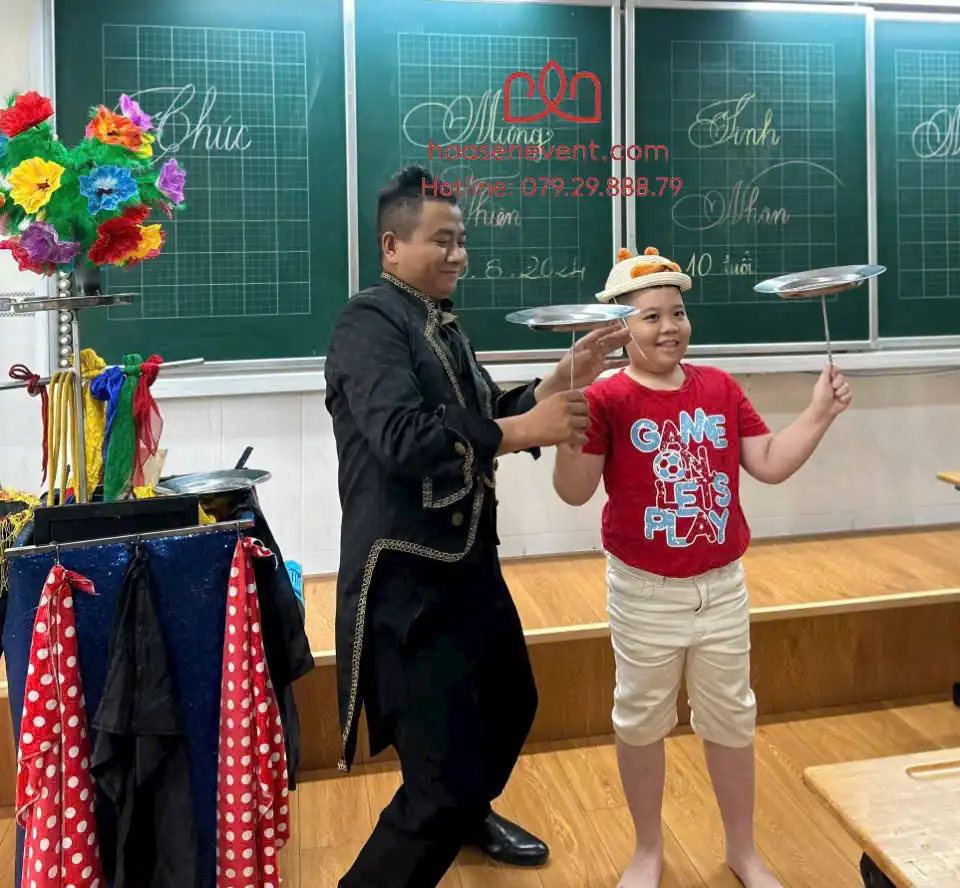 - Khởi động bằng việc thuê chú hề hoạt náo Bình Thạnh – những người nghệ sĩ đa năng với khả năng tạo hình bong bóng nghệ thuật tặng các bé, đồng thời quản trò tổ chức các trò chơi tập thể siêu nhộn (kéo co, đua rết, nhảy theo nhạc). Tiếp nối là chuỗi biểu diễn mãn nhãn từ các ảo thuật gia và nghệ sĩ xiếc chuyên nghiệp.