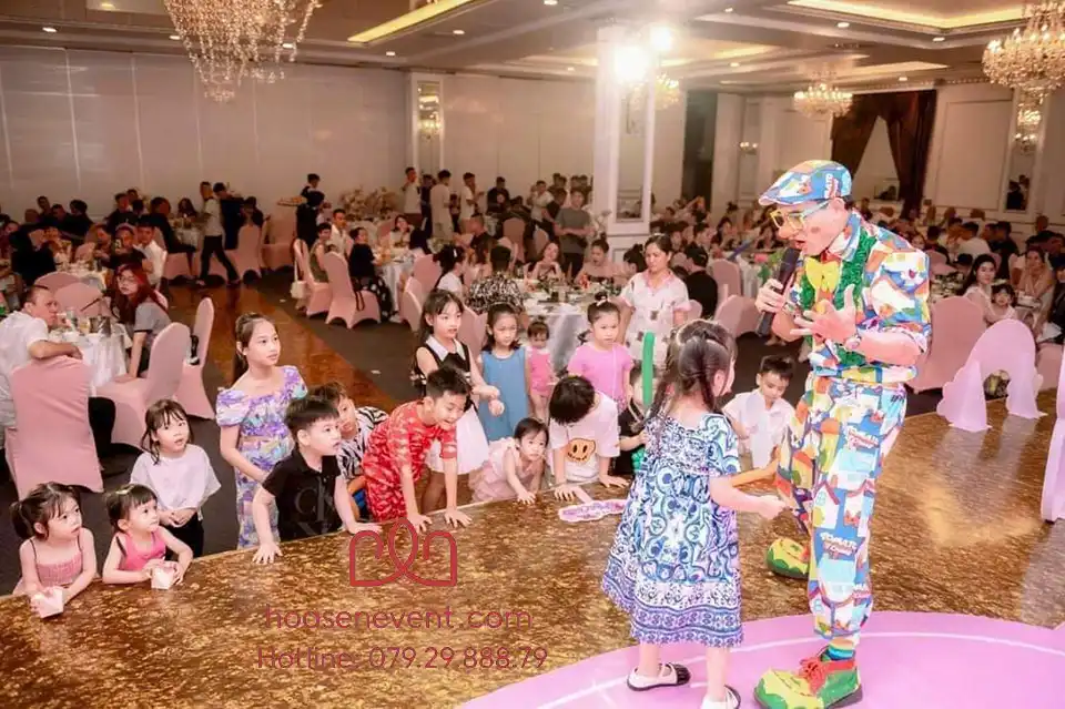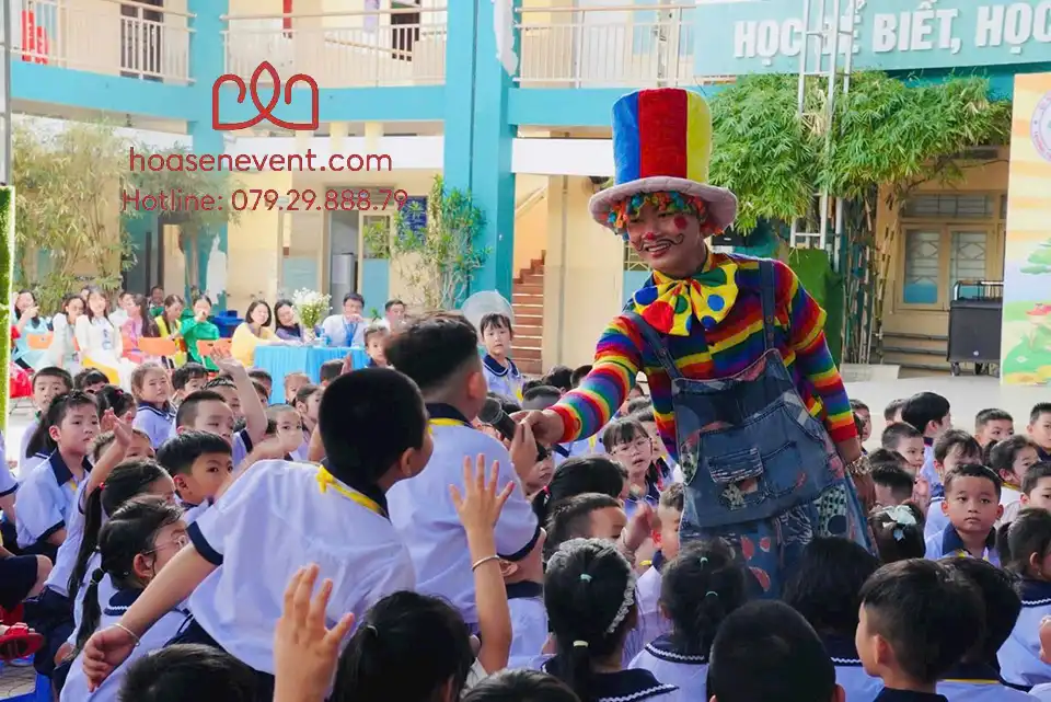 • Linh hồn của sự kiện chính là việc thuê chú hề hoạt náo Gò Vấp. Chú hề đa năng của Hoa Sen Event không chỉ đứng trên sân khấu mà sẽ trực tiếp xuống tận nơi, tặng bong bóng nghệ thuật và dẫn dắt các trò chơi tập thể siêu nhộn (kéo co, đua rết, nhảy vũ điệu hóa đá).