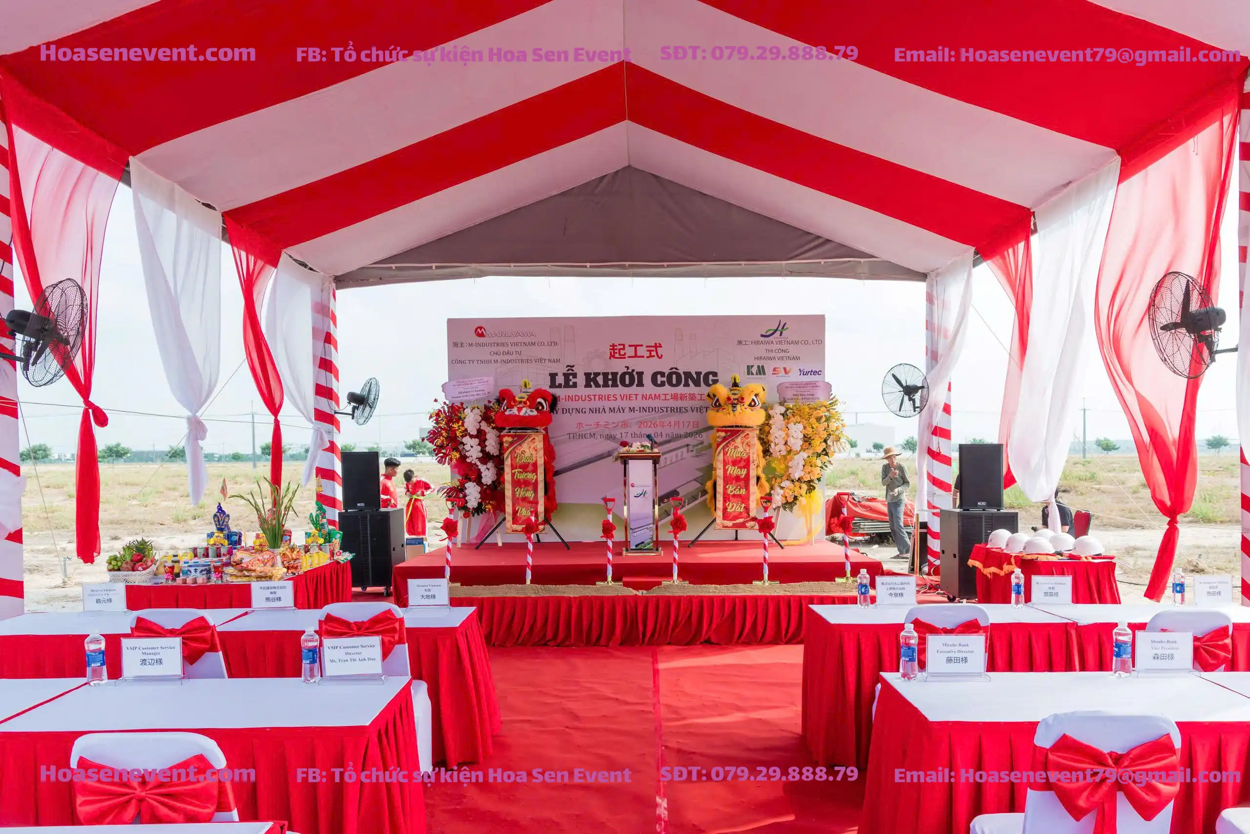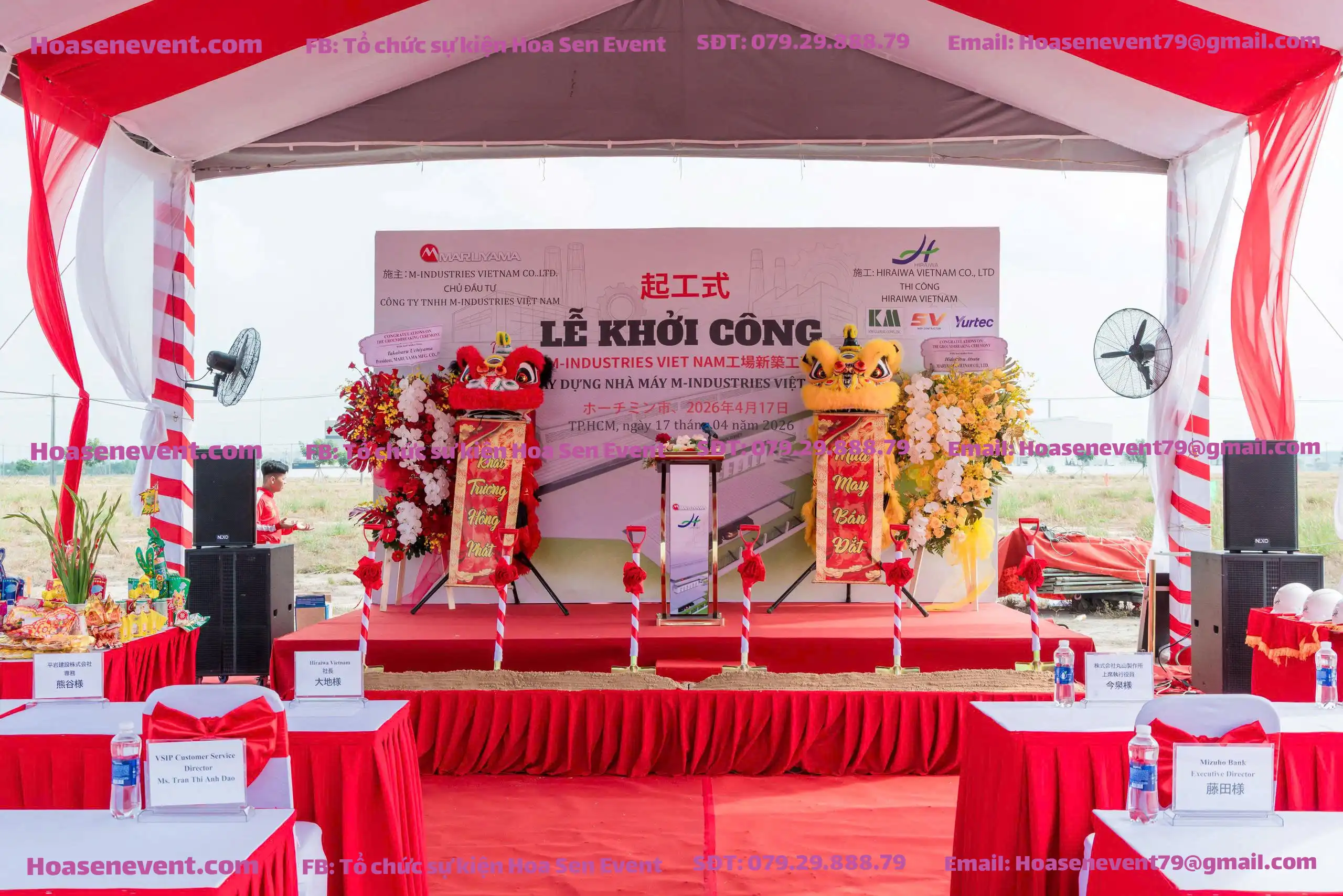 Sự góp mặt của chủ đầu tư uy tín và nhà thầu danh tiếng Hiraiwa Việt Nam đòi hỏi buổi lễ khởi công nhà máy M-Industries Việt Nam phải được chuẩn bị với tiêu chuẩn khắt khe nhất, từ khâu thiết kế hình ảnh đến an toàn lao động tại công trường rộng lớn của VSIP III.