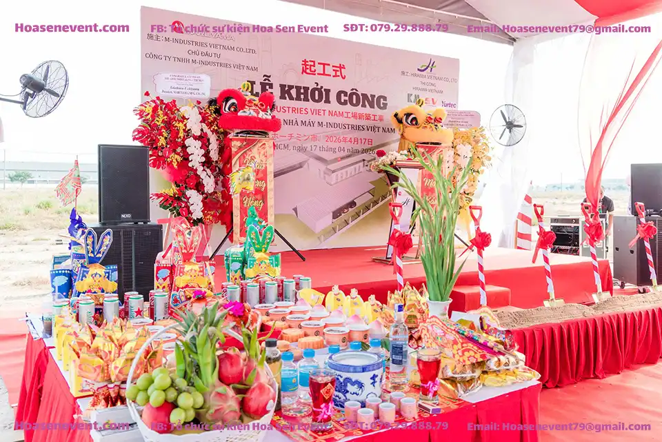 Liên hệ ngay với Hoa Sen Event để nhận tư vấn chuyên sâu và báo giá nhanh chóng. Chúng tôi luôn sẵn sàng đồng hành cùng bạn thiết kế nên những khoảnh khắc khai mở vĩ đại.“Một lễ khởi công thành công là bước khởi đầu vững chắc cho toàn bộ dự án”