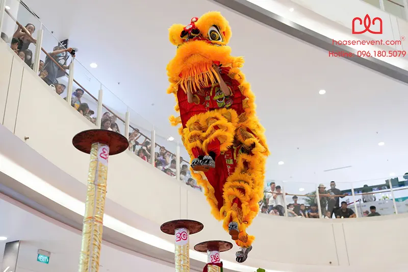 • Tiết mục Lân nhảy lên các trụ cao đòi hỏi độ khó và sự kịch tính, ngay lập tức thu hút mọi ánh nhìn và tạo ra hiệu ứng truyền thông mạnh mẽ cho sự kiện
