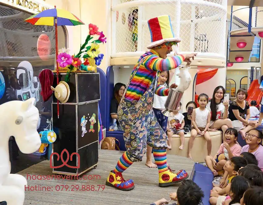Gói Cao Cấp (Khoảng 6.400.000 VNĐ): Tích hợp MC Chú hề hoạt náo, Chú hề bong bóng nghệ thuật và 1 Tiết mục Ảo thuật gia biểu diễn chuyên nghiệp. Gói dịch vụ này mang lại trải nghiệm đa dạng và cực kỳ thu hút sự chú ý của các khán giả nhí.