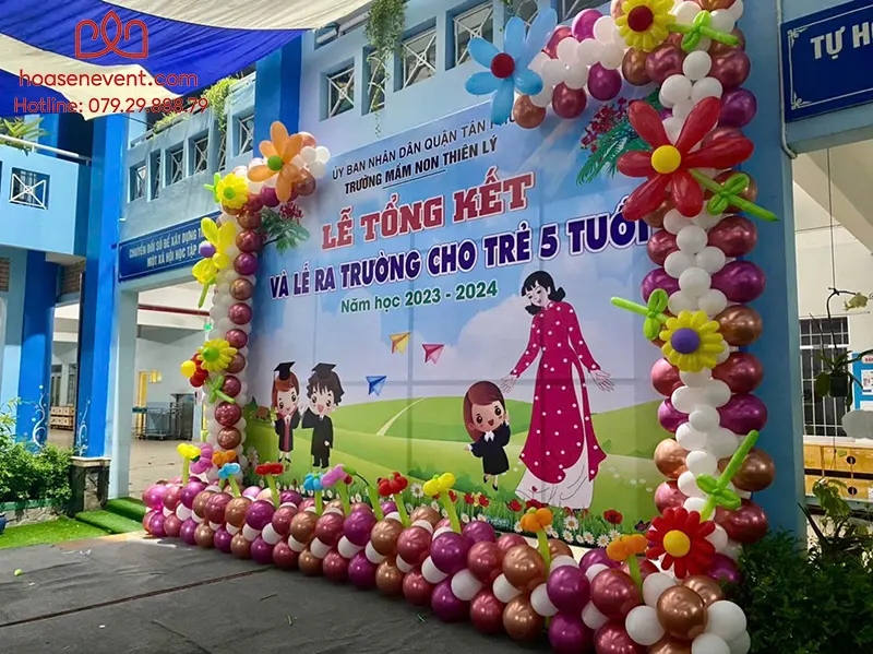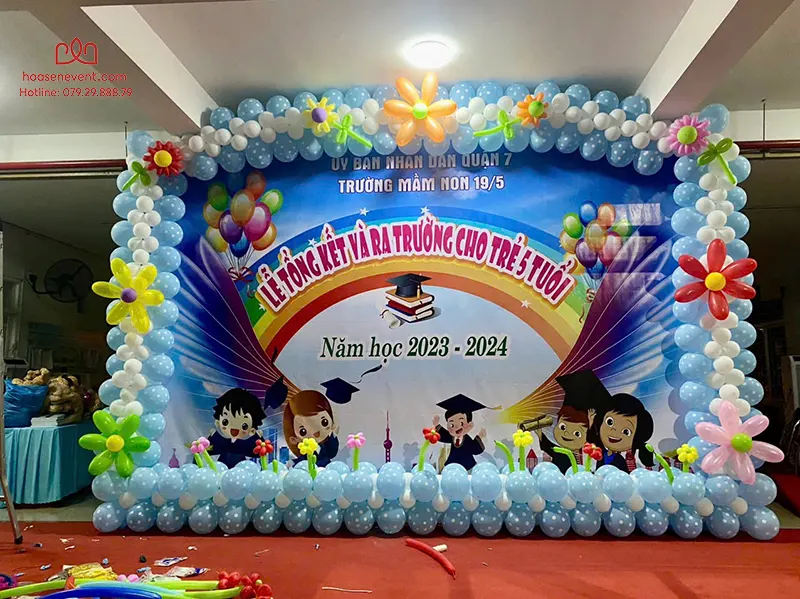 - Trang trí thêm line bong bóng sắc màu tạo điểm nhấn cho lễ tổng kết